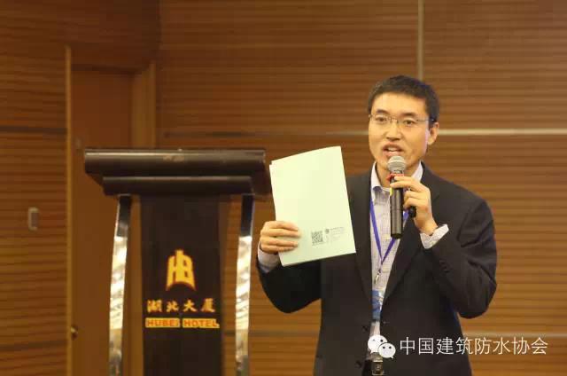 中國建筑防水協會理事長朱冬青首先致辭。他代表中國建筑防水協會祝賀分會年會召開。他說,單層屋面是一個系統工程,是國內建筑防水中最早系統化的分支行業之一,已進入高速發展期;但目前國內與國外的單層屋面發展水平仍存在差距,從事單層屋面防水工程的企業應進一步從服務商向綜合服務商轉變。他同時指出,單層屋面同整個防水行業一樣,在新常態下面臨轉型,質量提升工作也迫在眉睫。他還向與會人員講解了新出爐的《建筑設計防火規范》中與屋面防火相關的若干款條文。